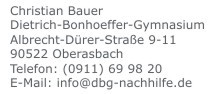 Die Erstellung einer Nachhilfebörse im Internet für das Dietrich-Bonhoeffer-Gymnasium war Thema einer Facharbeit im Leistungskurs Mathematik (BAU) des Kollegstufenjahrgangs 2006/2008.